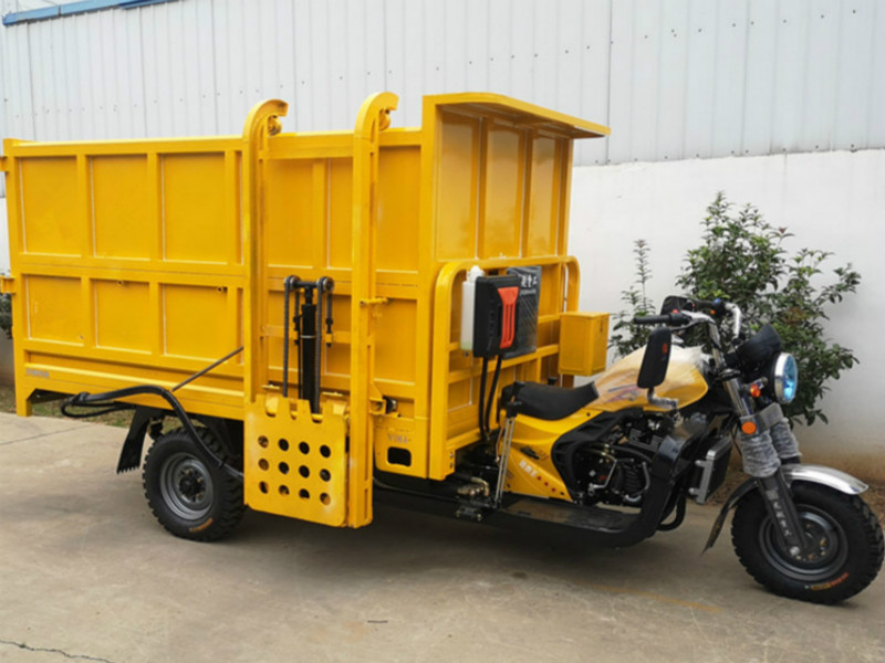 Zhongyuan Machinery three-wheeled motorcycle hanging bucket type garbage truck is fully automatic hanging bucket type garbage truck, easy to realize the lifting and flipping of the garbage can, manpower assistance, just need to light plate hydraulic lever. Save time and effort, greatly improve the work efficiency, and increase the coefficient of stability. And the motorcycle three-wheel power is strong, driving flexibility, very suitable for units, small areas, streets and other places of garbage removal work.